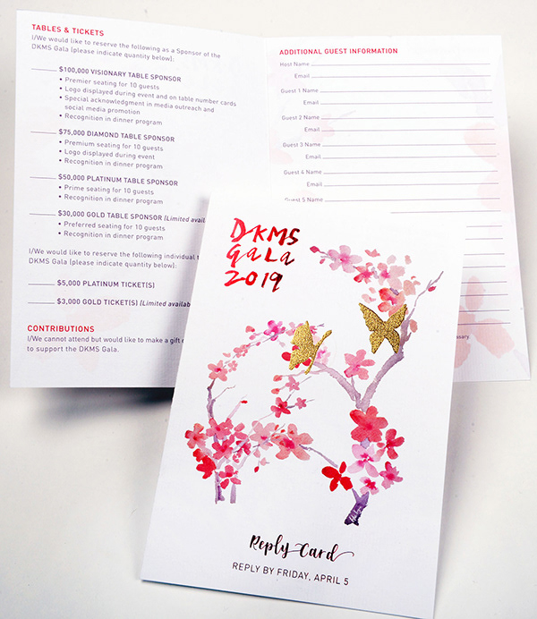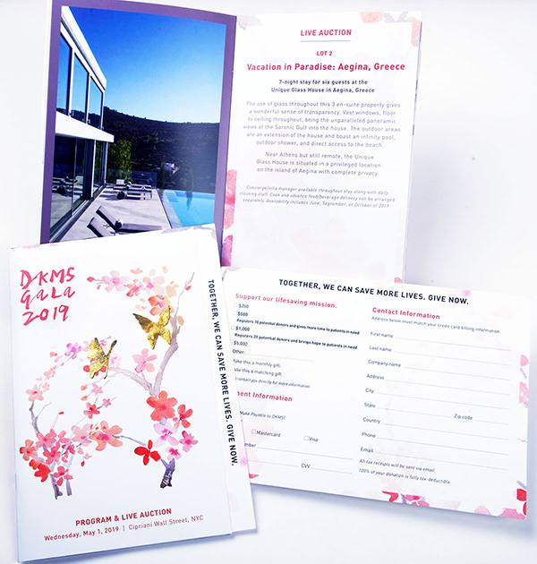 Designed an eight-panel invitation, reply card, and 24-page program guide for the 2019 DKMS US Gala—a spring event dedicated to raising funds in the fight against blood cancer. The invitation featured advanced production techniques, including foil stamping.